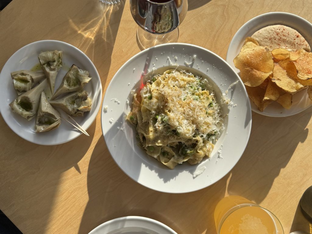 The Café serves breakfast (10-11.15am) and lunch (12-2.30pm) from Wednesday to Saturday, with dinner on Saturday evenings in the summer months.